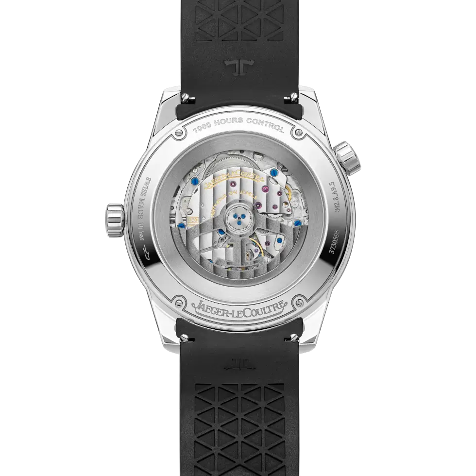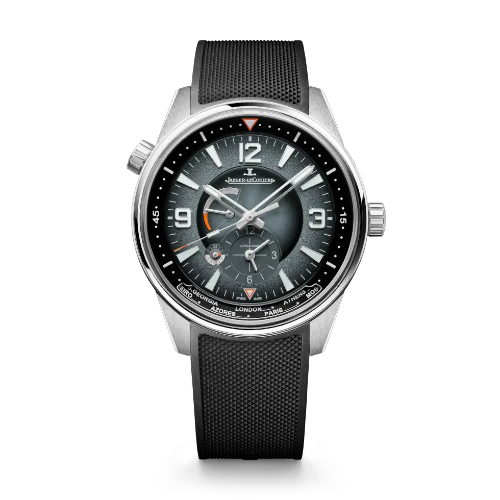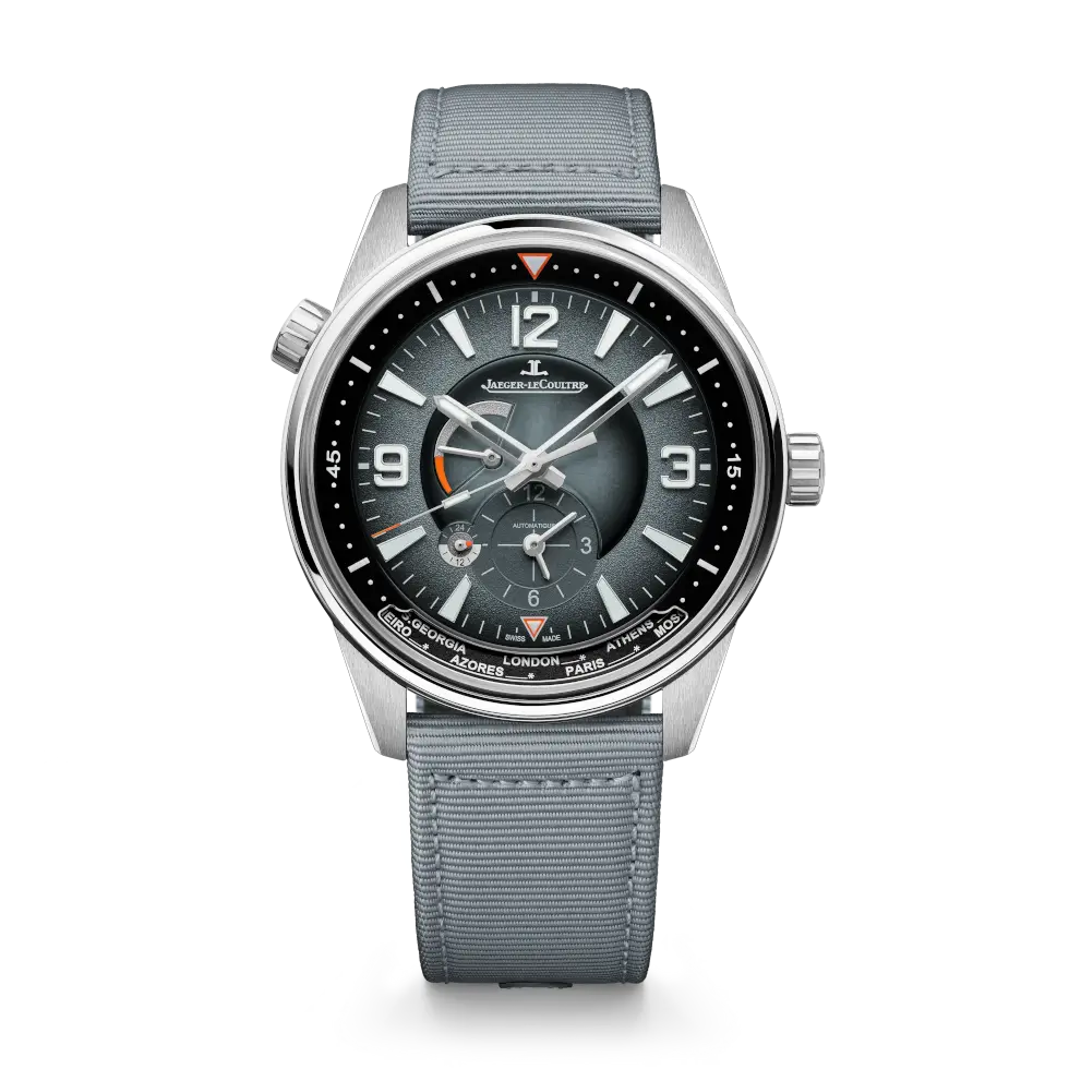 All functions are governed by the Jaeger-LeCoultre Caliber 939 — an automatic winding movement comprised of 282 components and 34 jewels. It measures 4.97 mm thick with a power reserve of 70 hours. Shipping with the Polaris Geographic are a blue canvas strap and a black rubber strap. Both use a double-folding buckle closure system.