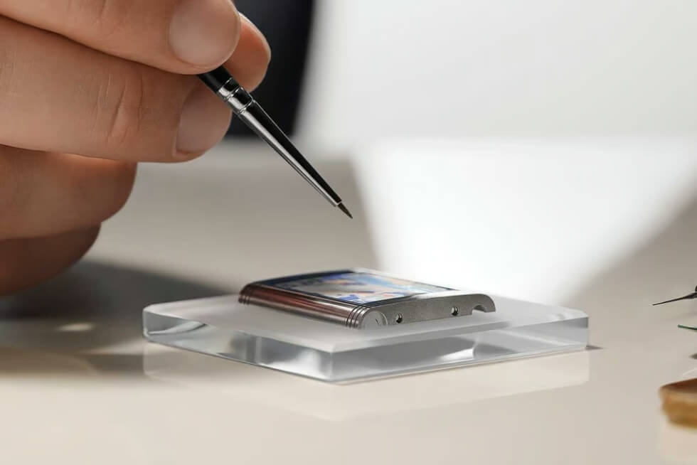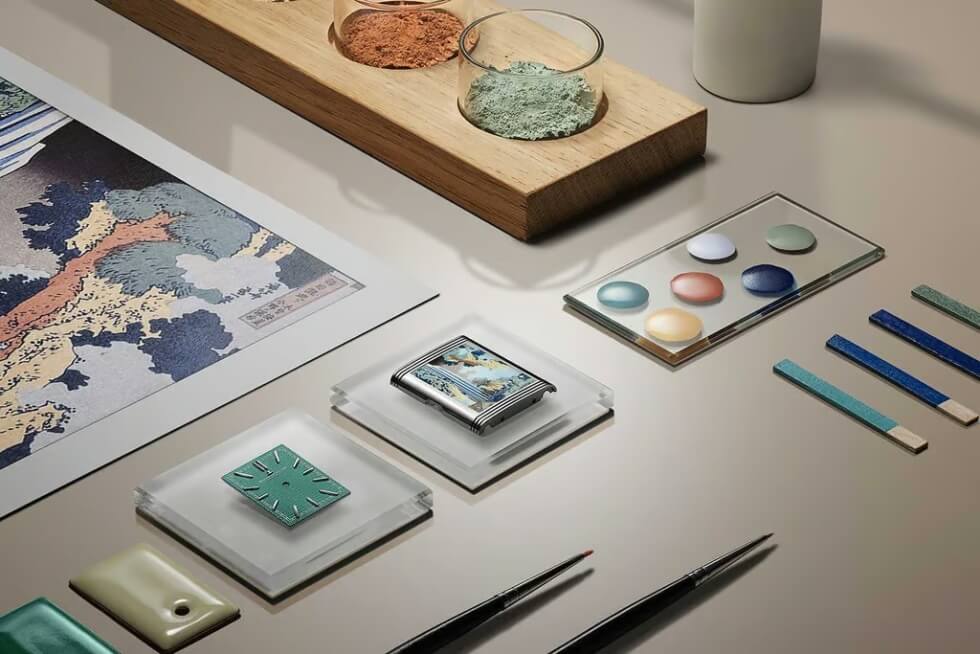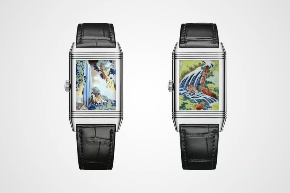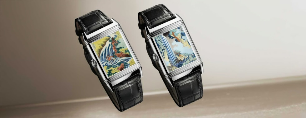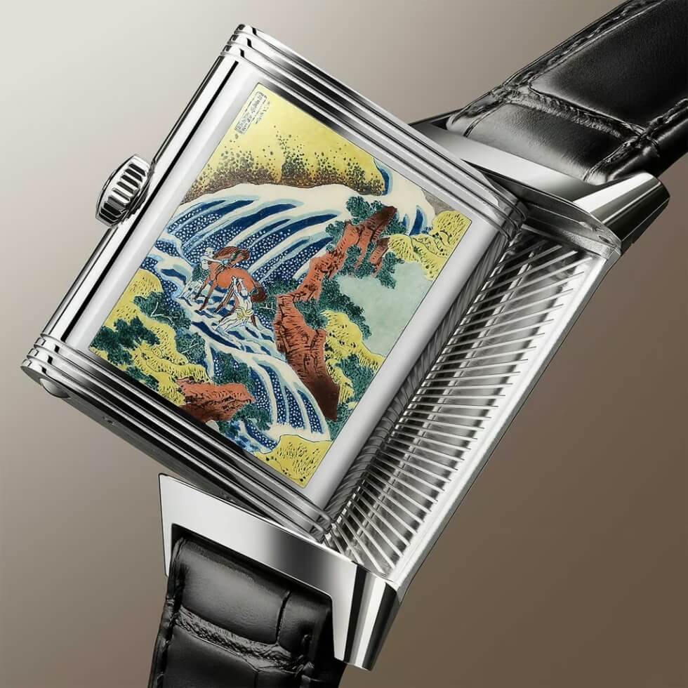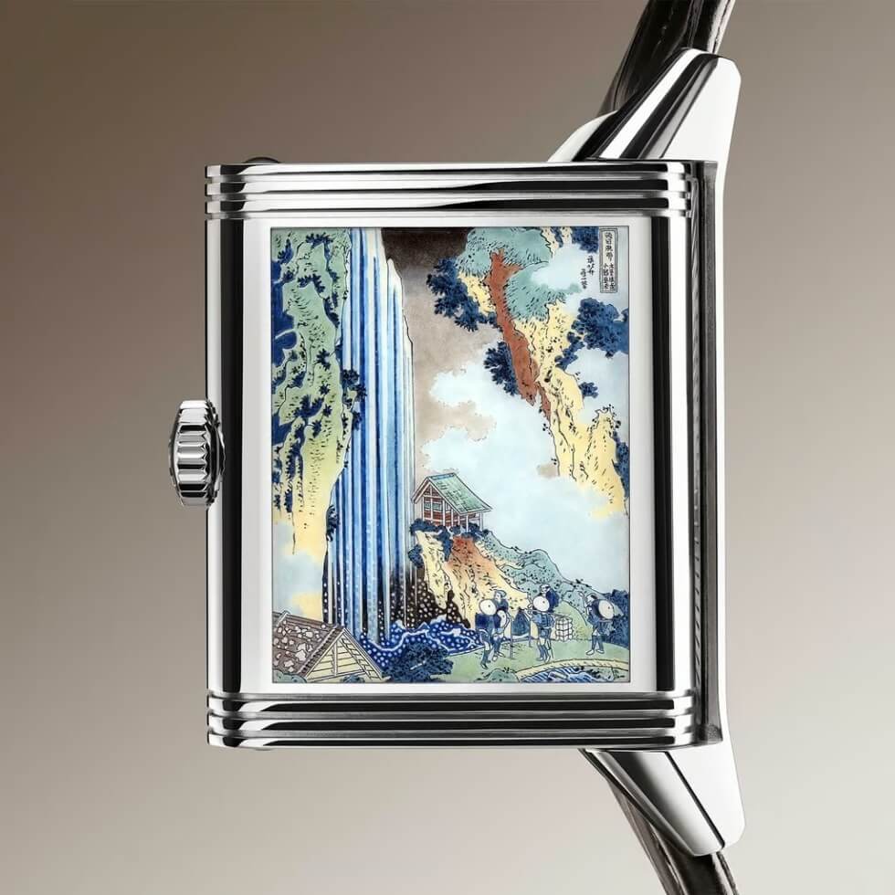 “The miniature paintings on the Reverso case-backs were executed using the Geneva technique, requiring 80 hours’ meticulous work. As well as the technical feat of reproducing Hokusai’s original colours (including the graduated bokashi effect) in an entirely different medium, the enameller faced the challenge of precisely reproducing every detail with pinpoint accuracy, on a scale approximately one-tenth of the original,” writes Jaeger-LeCoultre about the Reverso Tribute Enamel Hokusai