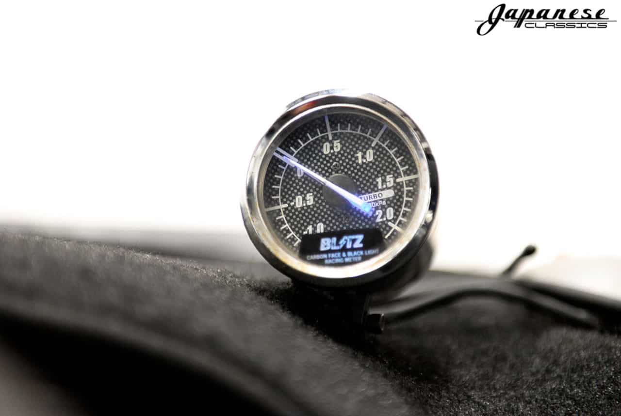 The Nissan 180SX featured above retains the original look, but everything’s different inside. For starters, there’s a new Apexi intake, a Blitz Super Sound blow-off valve, and a Kakimoto Catback exhaust. Going all the way to the wheel wells, you’ll find suspension upgrades care of Tein coilovers. And then there are Cusco strut tower braces plus an EDFC from Tein.