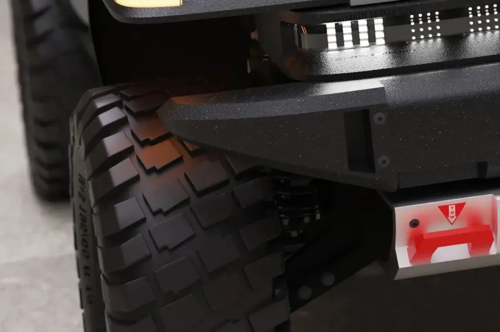 The Next Wrangler also features a stylish topographic livery on top of the hood. We like the two-tone body wherein the upper section sports a gloss finish, while the lower is a speckled matte black. This two-door five-seater boasts panoramic views from inside.