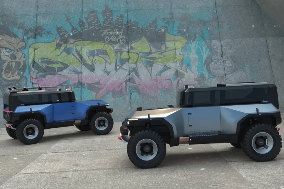 Others were quick to point out similarities with the Toyota FJ Cruiser, GMC Hummer, and Land Rover Defender. We have extremely flared-out fenders with sharp edges that aggressively angle up to the hood. This approach allows the Next Wrangler to accommodate beefy four-spoke rims.