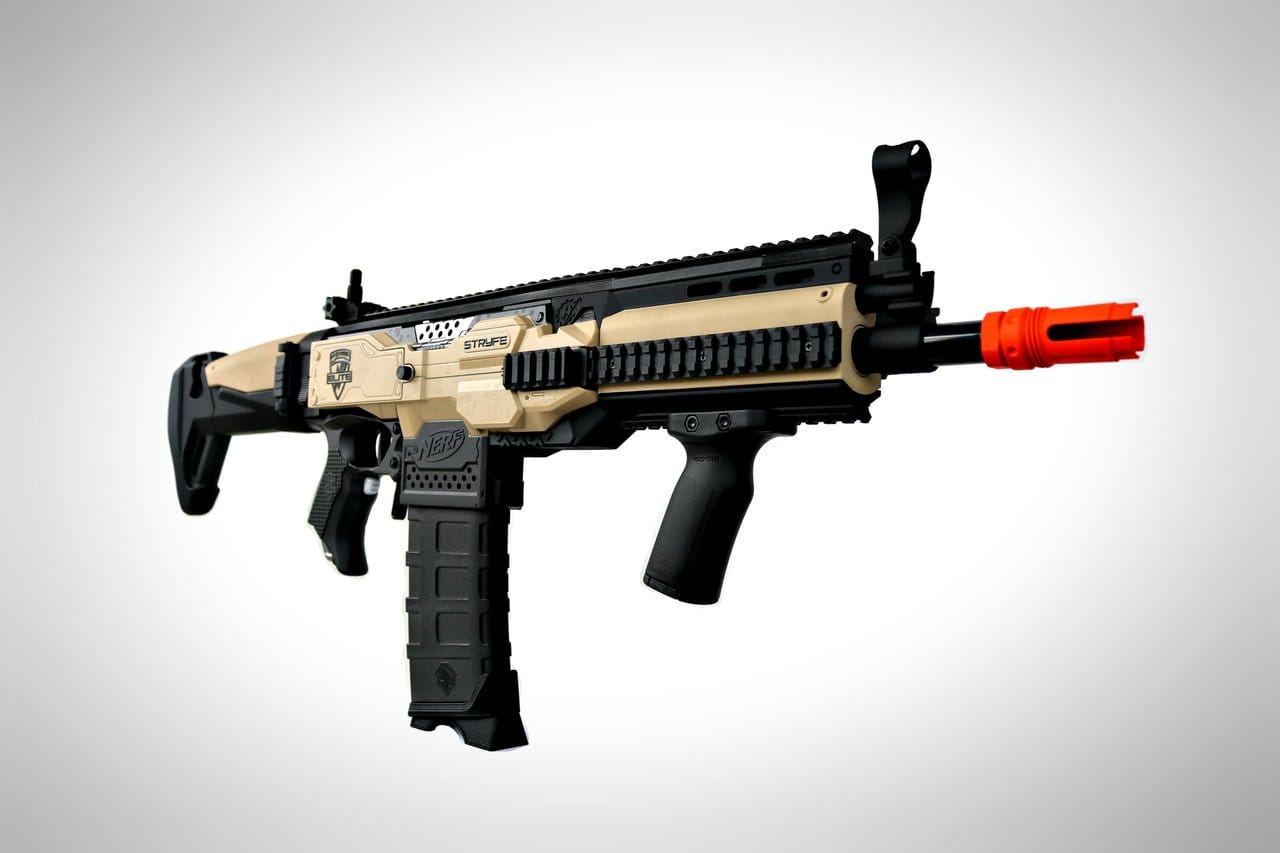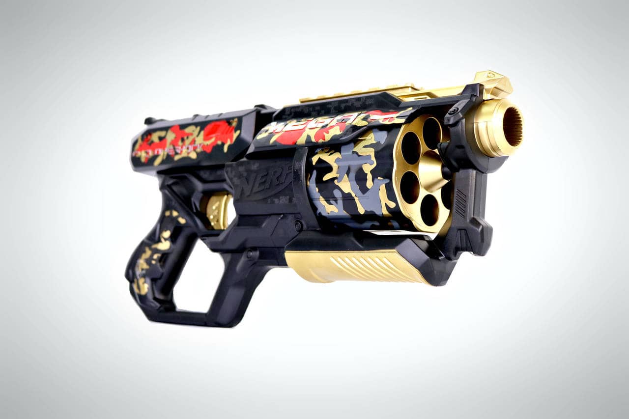 Instead of the loud colors sported by regular Nerf blasters, these toy firearms can be mistaken for the real thing. What gives them away are the orange tips on each end of the barrel, which is necessary to meet safety regulations. The studio ends up replacing the original colors with military-style finishes that are impressive to look at. Just note that these are still compatible with the regular foam dart ammunition of the original donor toy. You can choose from various paint jobs that strike your fancy to personalize your blaster.