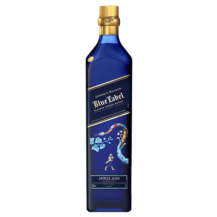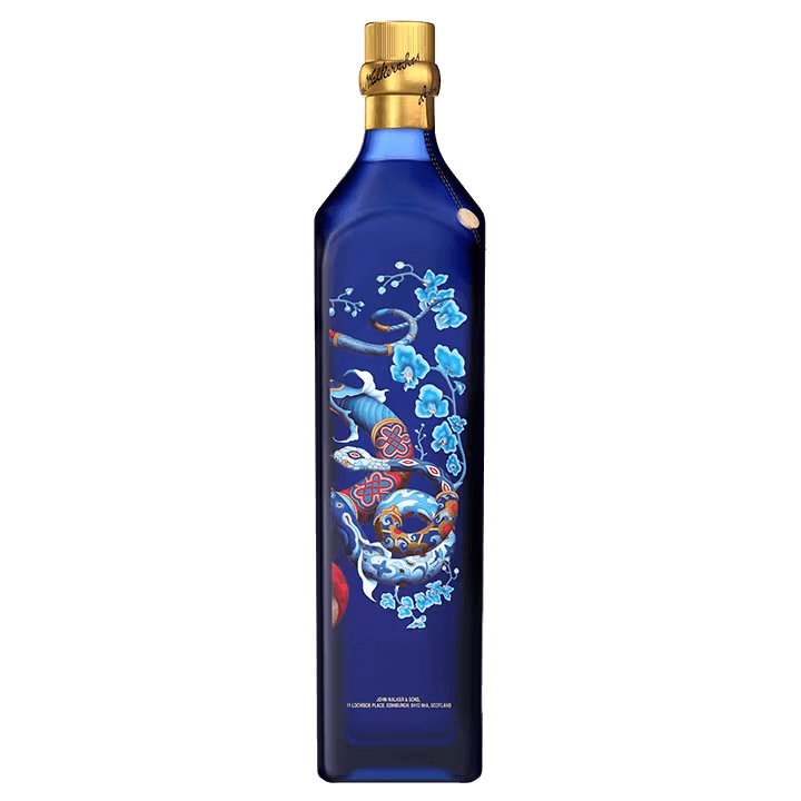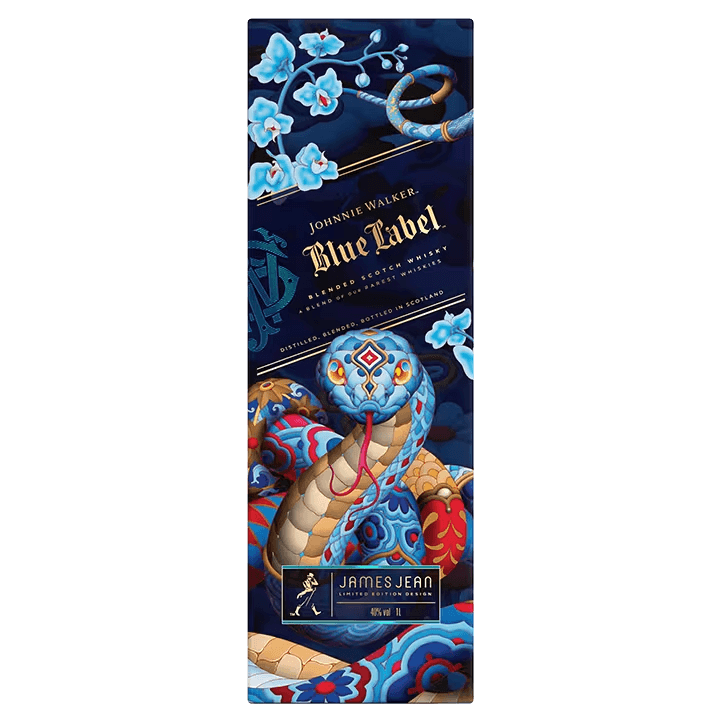A total of three snakes adorn the box and reportedly represent intuition, intelligence, and wisdom. The trio are supposedly shedding their skins amidst a backdrop of blooming flowers alluding to the “next chapter in life.” A similar aesthetic also appears on the Blue Label Year of the Snake bottle as it wraps around the surfaces of the crystal vessel.