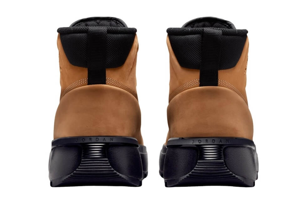 An embroidery of the Jumpman logo in black adorns the tongue tag. The same emblems in gold appear on the lateral sides of the collar. Chunky rubber outsoles enhance traction on a variety of surfaces. Nike lists the official colorway as Black/Muslin/Varsity Red. Lastly, the Jordan City Boot “Flax” is due to launch this fall.