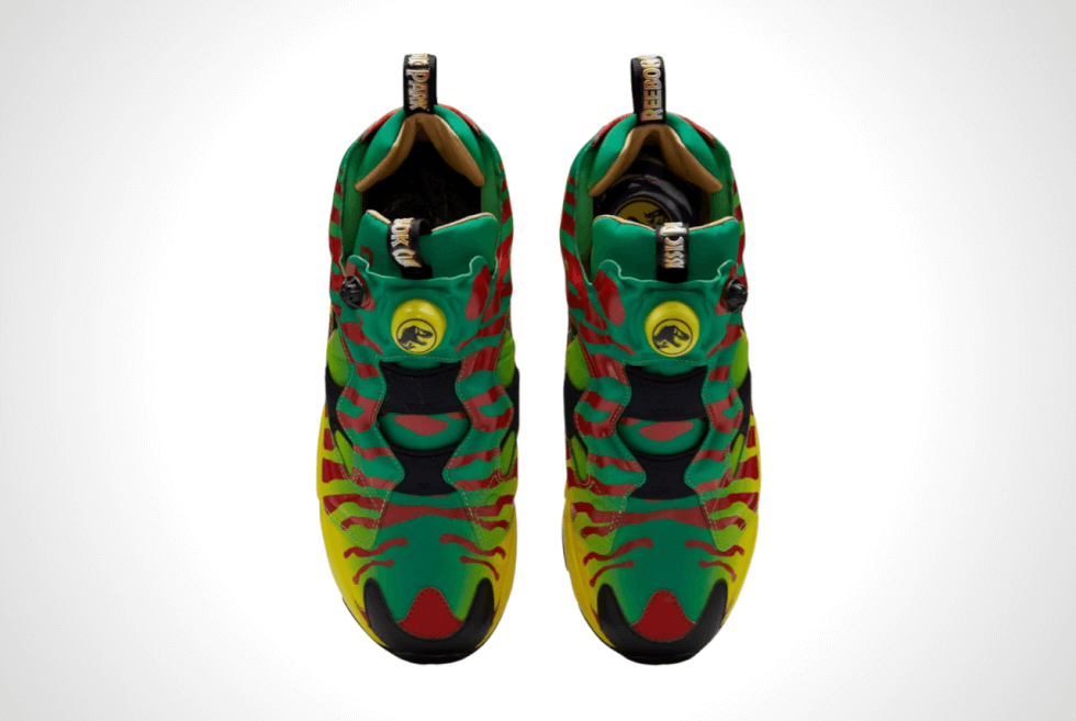 The Jurassic Park x Reebok Instapump Fury is a tribute to the ill-fated SUV. Emulating the exterior, you have a gradient mix of yellow that starts from the bottom and shifts into green at the top. Splashes of red stripes are visible on the lateral and medial sections of the upper with some elements in black.