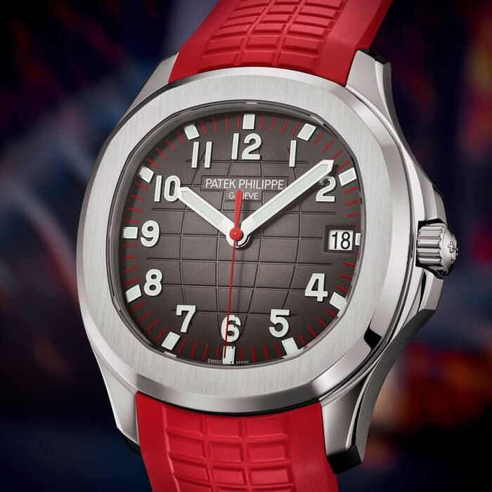 Much like equally the luxurious Nautilus and Audemars Piguet Royal Oak, the Patek Philippe Aquanaut has stood the test of time as a classic option. The watch features a signature crosshatch black dial with a red minute track. Plus, a matching red handset. Complementing the red rubber strap are red accents. This nods to Singapore’s signature color.