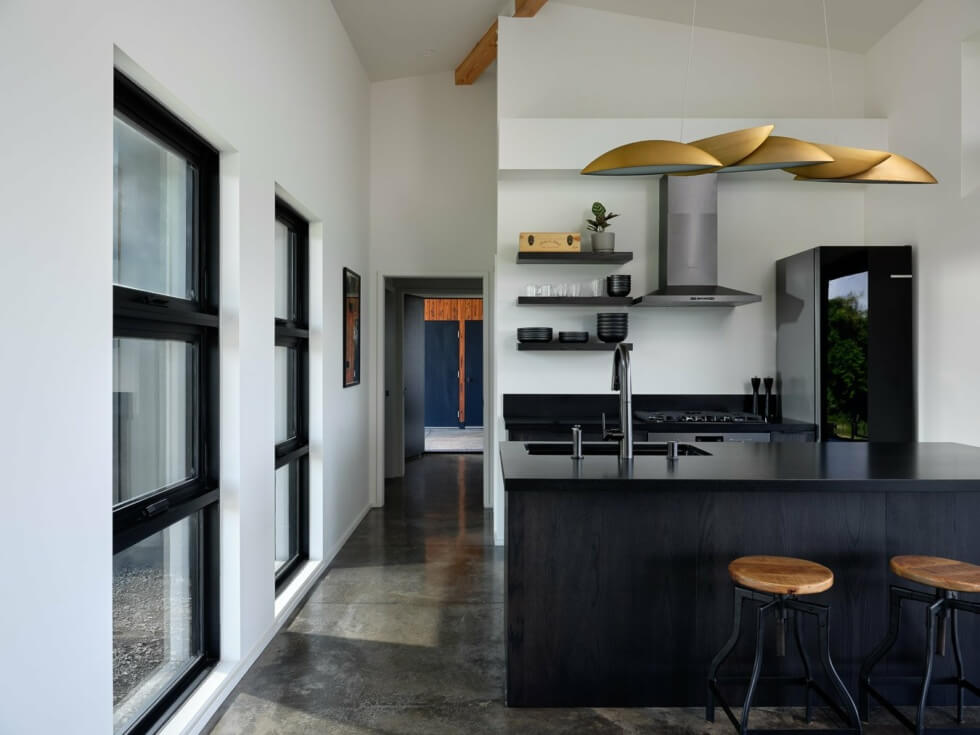 They’re sourcing the charred wood siding called yakisugi — or ‘shou sugi ban’ — from Nakamoto Forestry.” Additionally, the rest of the walls are also clad in James Hardie siding. These provide adequate protection against the elements and enhance the exterior’s appearance.