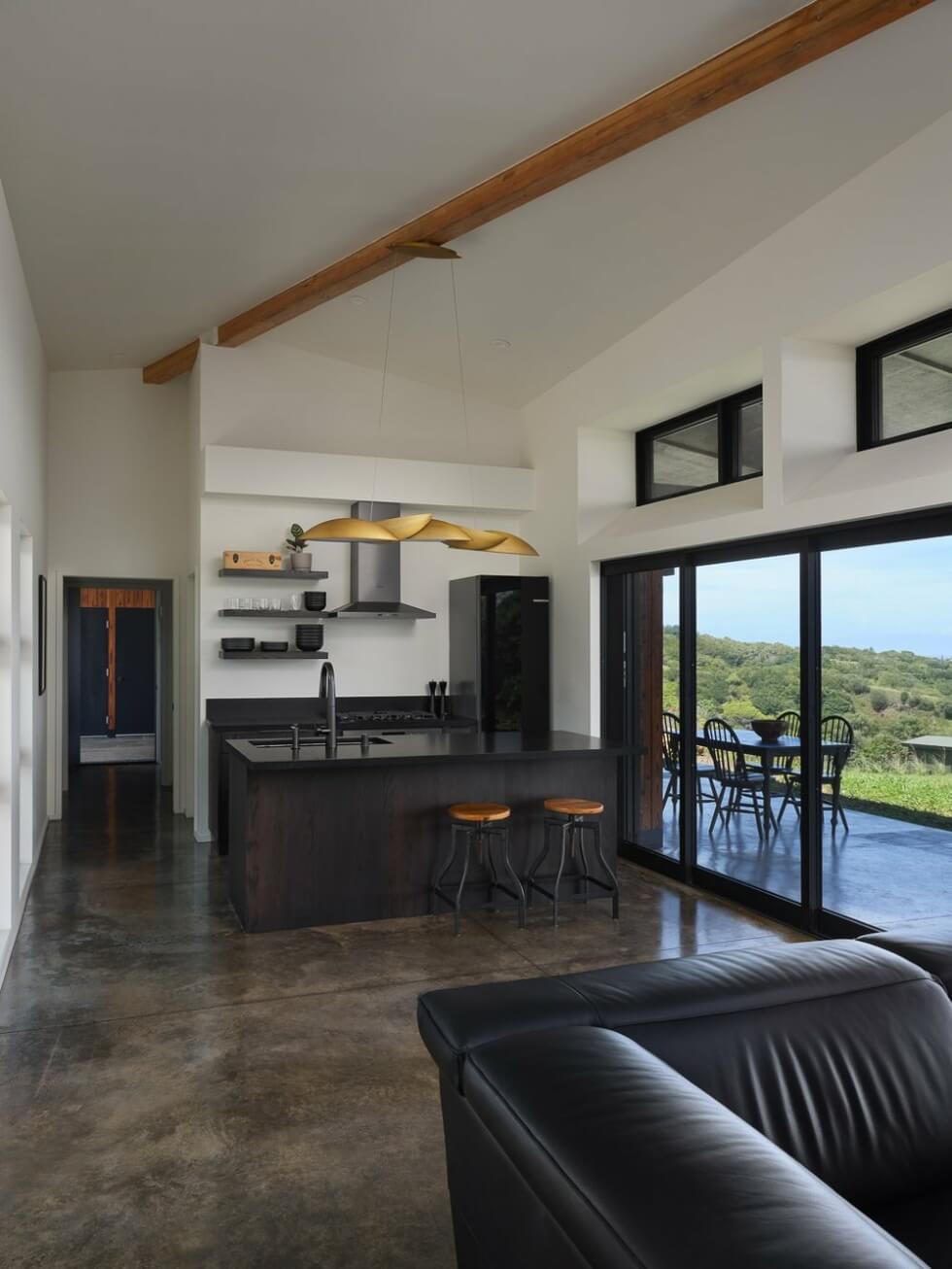 It stands on a promontory with a gentle slope that provides panoramic views of the Pacific Ocean on one side. Meanwhile, the opposite end of the Kailua Hale home offers glimpses of the surrounding verdant landscape. As noted by the project details, its construction mostly uses wood.