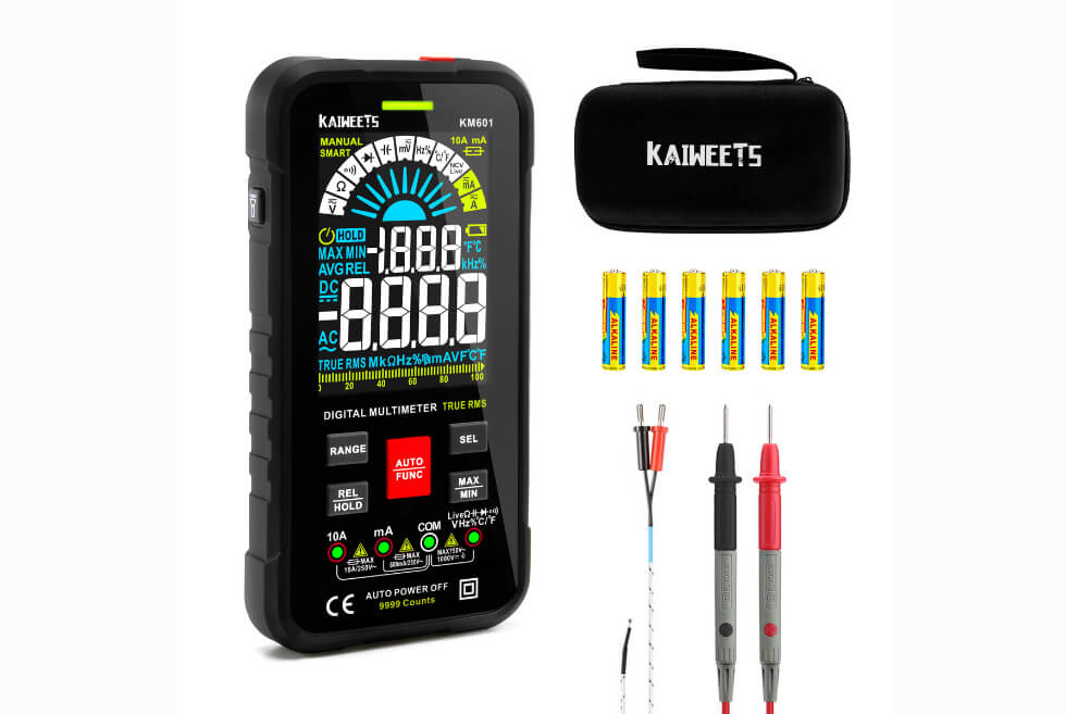 Overall, the KAIWEETS multimeter is made perfectly in line with the daily and recurring usage of industrial and household consumers. KM601 works everywhere and for everyone, that includes HV industrial CBs, fault lines, single/three-phase and multi-phase motors, cars and DC circuits, and household single-phase appliances. The choices are diverse, from diodes to NCV and frequency measurements with dead-accurate readings. The thermocouple indicates real-time temperature which is a great addition to the KAIWEETS technology and also for the end-users. The price is also affordable for it to attract customers to switch to a smart meter without spending hundreds.