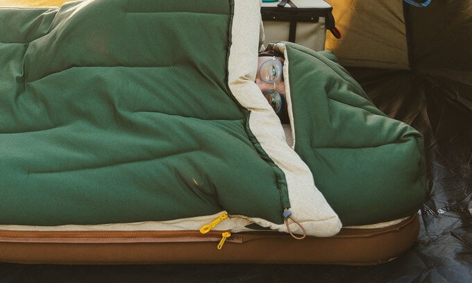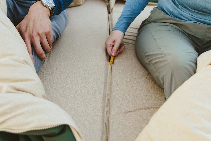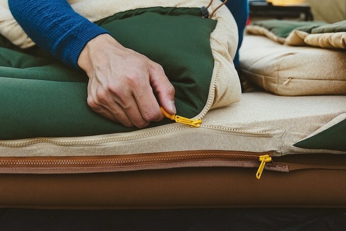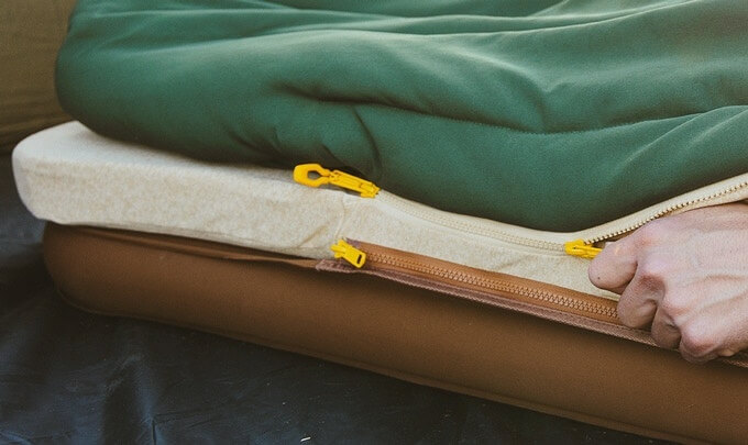 Of course, your head needs protection from the cold too. The top of the bed comes with a deployable insulated hood and the system even comes with its own oversized adjustable pillow. The comforter also offers the perfect balance of breathability and warmth with its silky interior and water-resistant exterior. It also features built-in shock cords at the head to prevent cold drafts and improve heat retention. The system’s asymmetric zipper also allows for seamless integration between components so you can create a queen-sized bed for two.