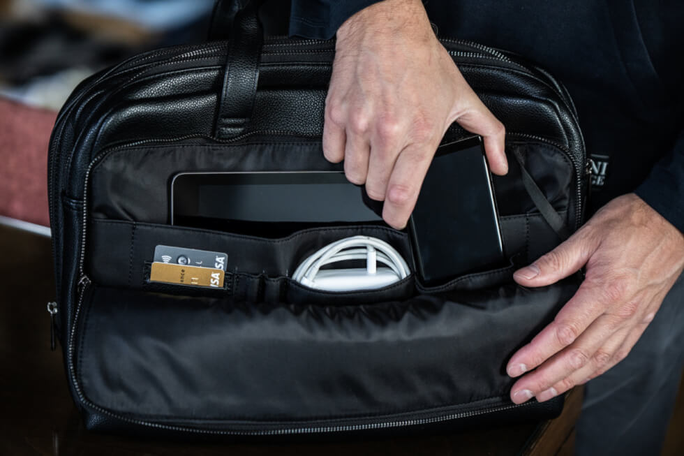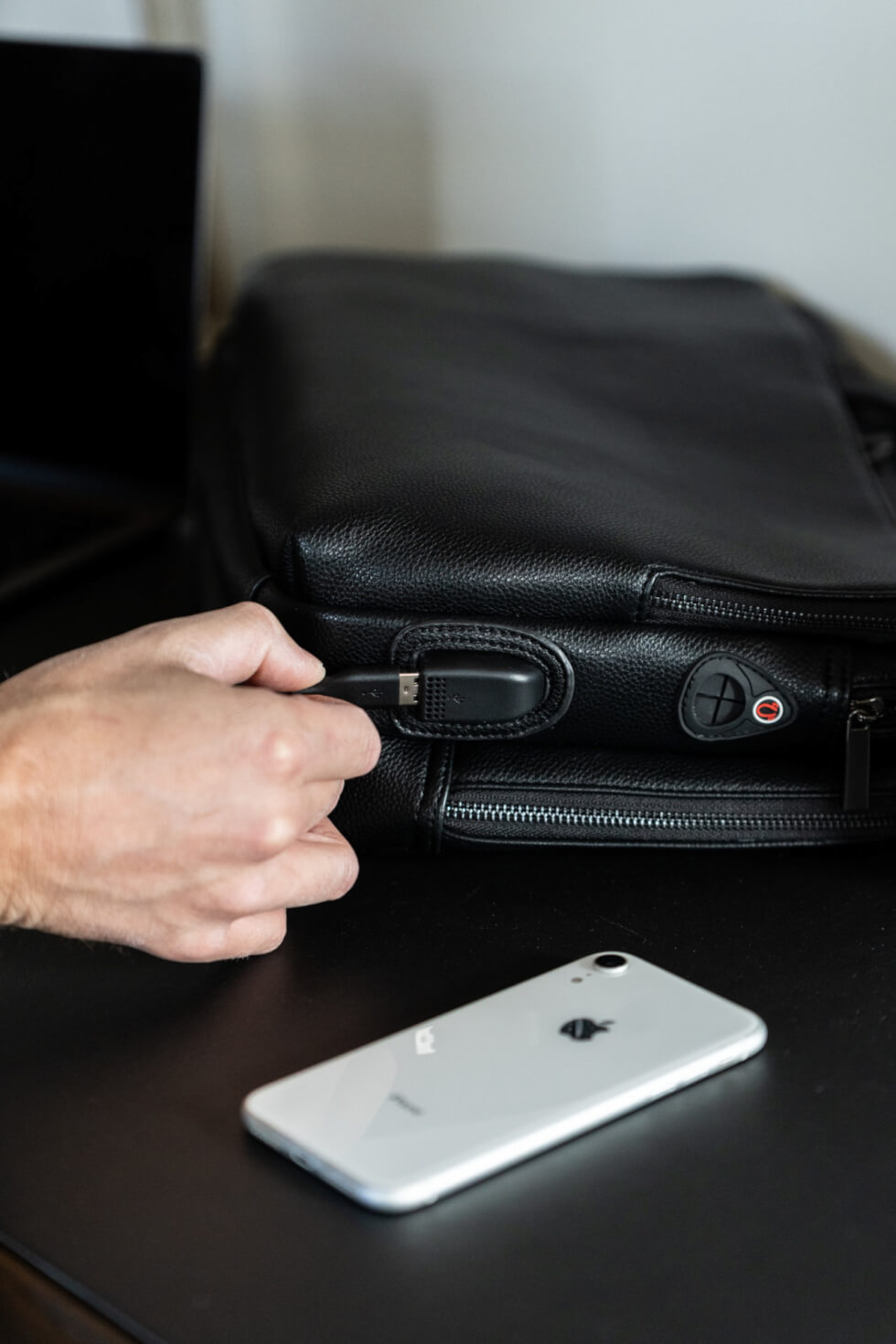 Call it your portable office if you will.  Its practical storage solution keeps your items organized and safe. There is space for your laptop, tablet, cellphone, credit cards, power banks, documents, other tech gadgets, and more. The briefcase even comes with a built-in external quick-access port for your mobile charger.