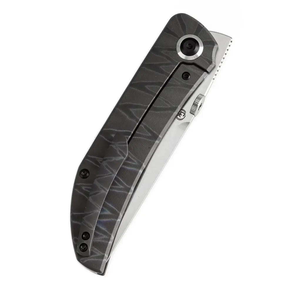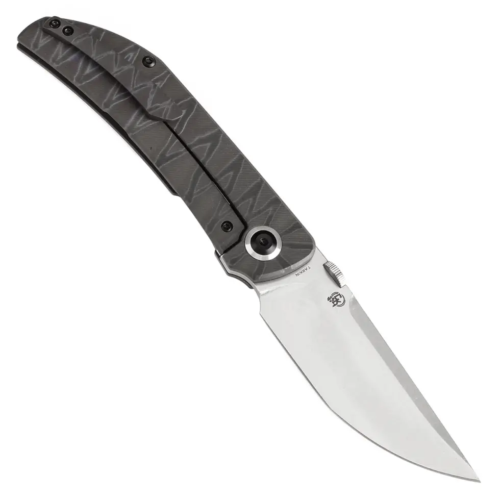 According to the product description, “Whether for detailed work or everyday tasks, the thinness of the blade ensures smooth performance, making it perfect for slicing, fine cuts, and tasks requiring precision.” Another attractive aspect of the Tarkin is the tiger stripe flamed titanium scales.