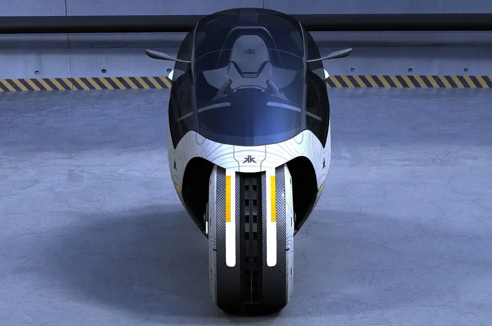 Despite what it looks like, this here is a vehicle instead of a bike. There are two hubless wheels on each end with independent wishbone suspension to enhance its cornering capabilities and overall stability. With the canopy open, you are greeted by a cockpit with a racing-inspired bucket seat and steering yoke. the fact that there are no handlebars means the Karver Cycle Concept K1 is not a motorbike.