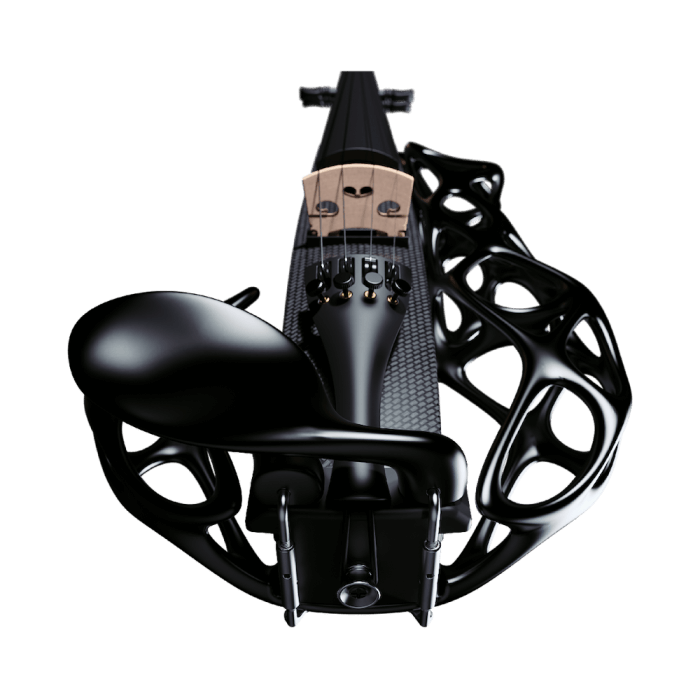 It wraps around a maple body with a birch fingerboard – both in a carbon fiber weave finish. Katahashi Instruments says the 4/4 electric violin uses Jujube wood for the chinrest and tuning pegs. Users can connect its active pickup system via a standard 1/4-inch jack to an amp.