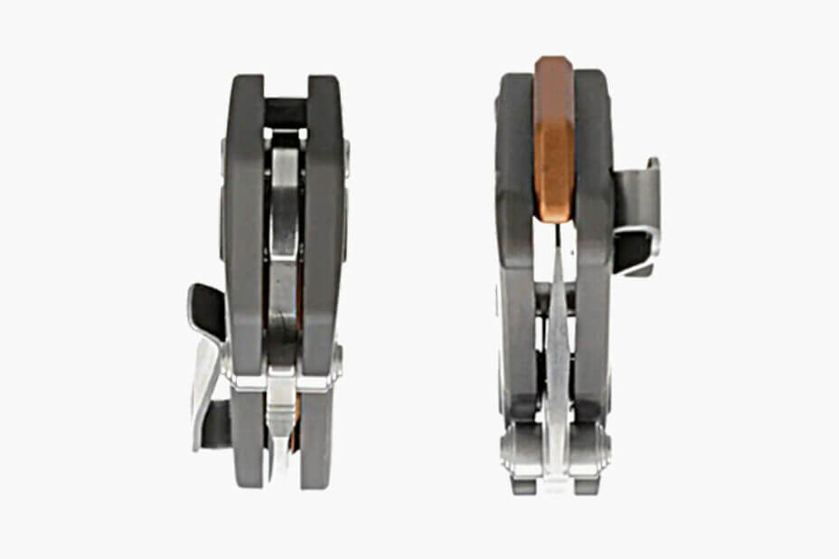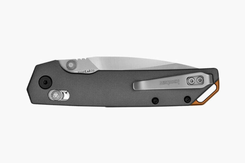 Rounding up this pocket knife is a reversible deep carry pocket clip, an integrated lanyard hole on the aerospace-grade aluminum handle, and contrasting bronze-anodized aluminum backspace for a splash of color to the dark silhouette. The entire knife is also pieced together by black-oxide-finished hardware throughout.