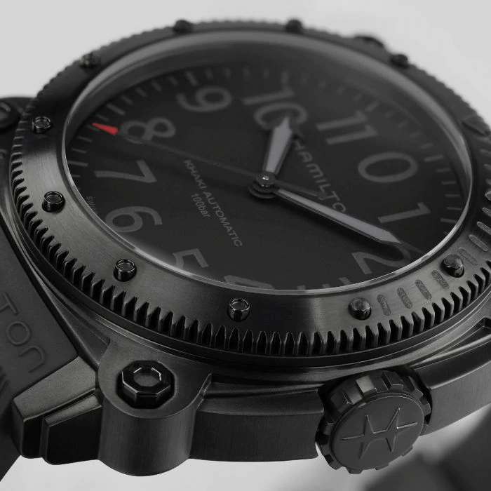 Over the years we have amassed a catalog of awesome items that are available in an all-black ensemble. To start off, there was the BMW X6 Vantablack as the darkest there is available on a commercial vehicle. What follows the O.CT Mercedes-AMG GT R, Vollebak Blackout hoodie, and Hublot Big Bang GMT All Black Yohji Yamamoto. These are just a few examples of what we love to see and Hamilton gladly follows with another. The Khaki Navy BeLOWZERO is a special edition with a movie tie-in.