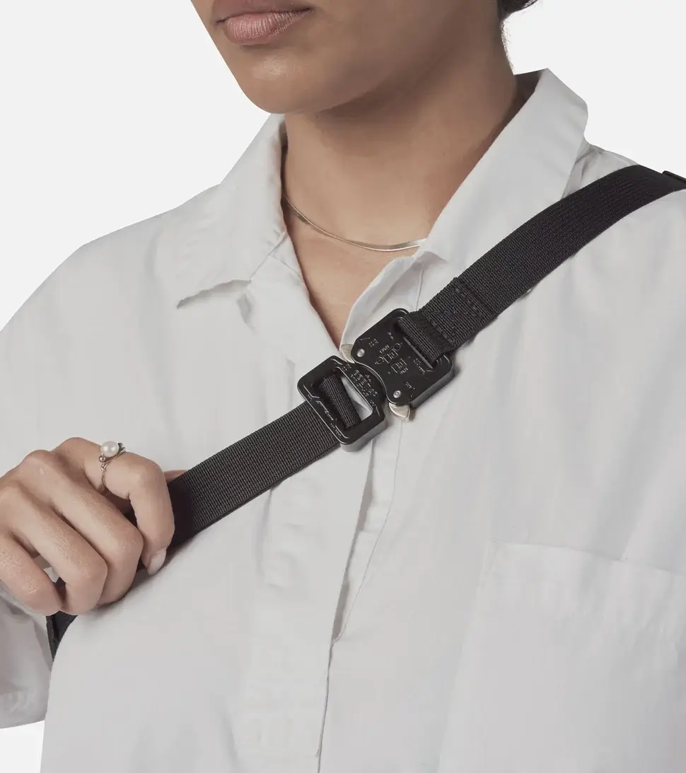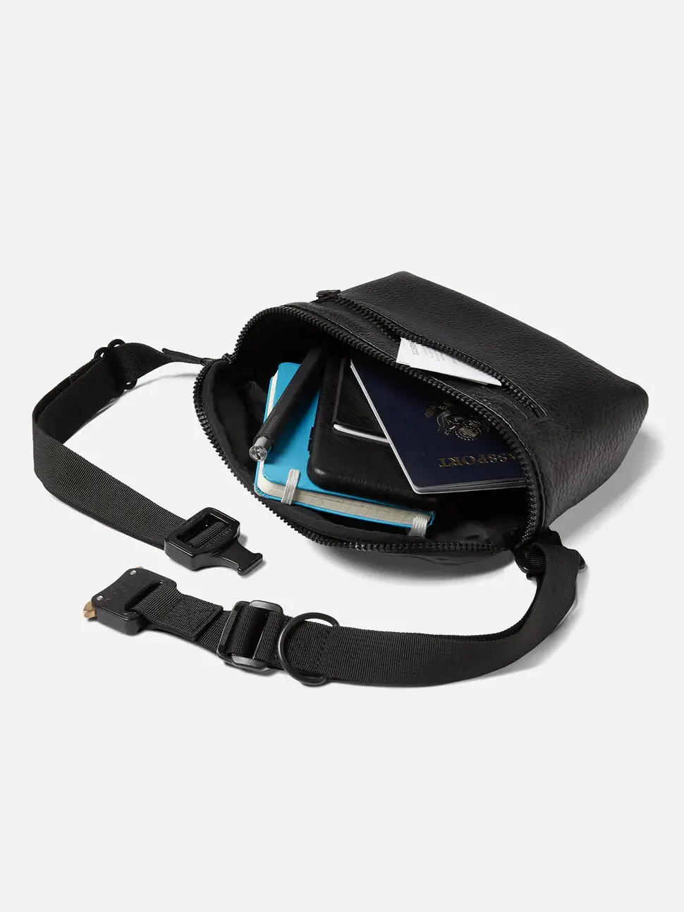 Meticulously designed and handcrafted in Los Angeles, California, this sling bag also ensures the contents stay dry under a drizzle by using a water-resistant “Aquazip” finish over Swiss-made Riri zippers. Likewise, stored items stay protected from scratches via a nylon interior lining.