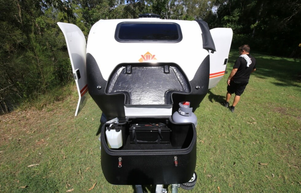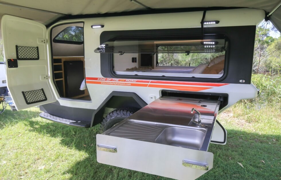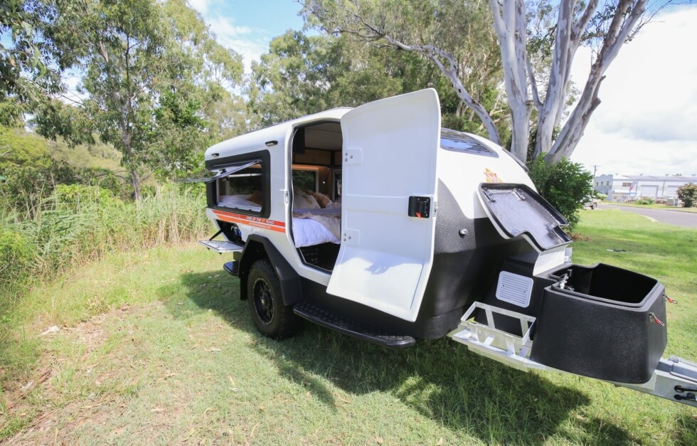 This teardrop camper is “designed to go where others can’t, you’ll discover life starts at the end of the road.” To start, the manufacturer assures its clients that every unit assembled and delivered is engineered for off-road fun. Hence, the construction does not include any timber and only uses high-strength materials.