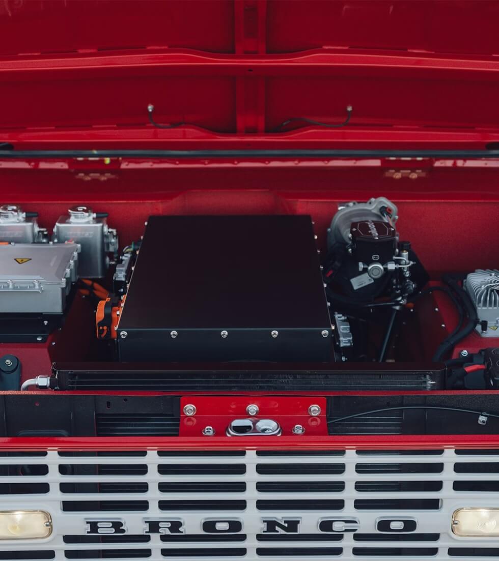The EV Bronco starts with a two-door trim of the 1966 to 1977 model year, which first undergoes restoration. This addresses any underlying issues before the major makeover could begin. Out goes the original mill as the setup welcomes a dual motor setup for its all-wheel-drive capability.