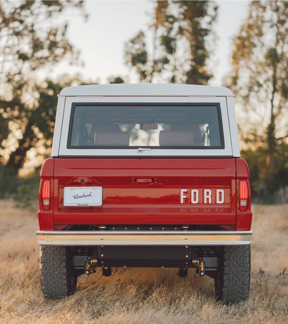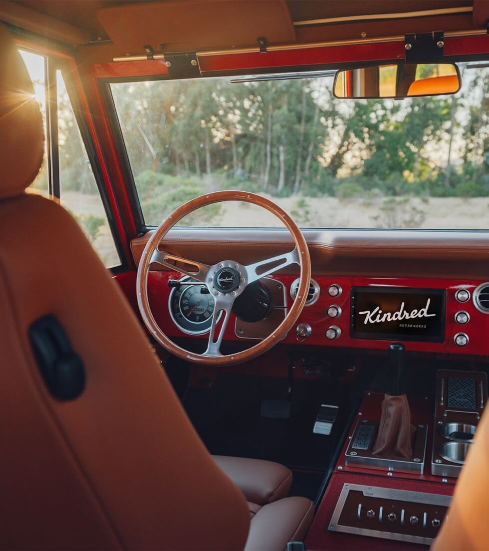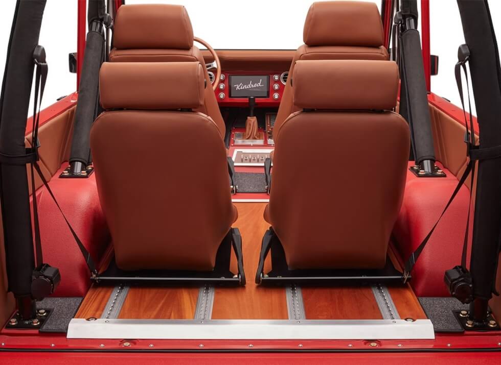 As for the cabin, expect front-seat heating, dual cup holders, custom leather upholstery, power locks, power windows, rear bucket seats, and a six-point roll cage, among others. Kindred Motorworks is offering 10 default paint jobs for the EV Bronco, but clients can fully customize their units upon request.