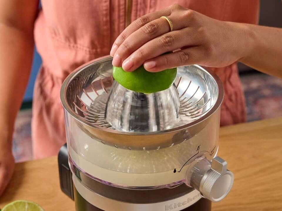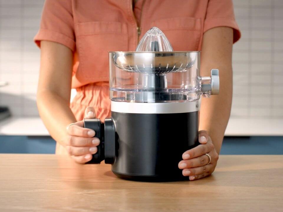 The citrus juicer runs up to three hours and features a versatile reamer so it works with various sized fruits from tiny limes to big, juicy grapefruits without using attachments. It also has an auto-reversing motion to effectively squeeze every last drop. Then a precision spout smoothly pours the juice directly into the glass to prevent sticky tables or wasted drops.
