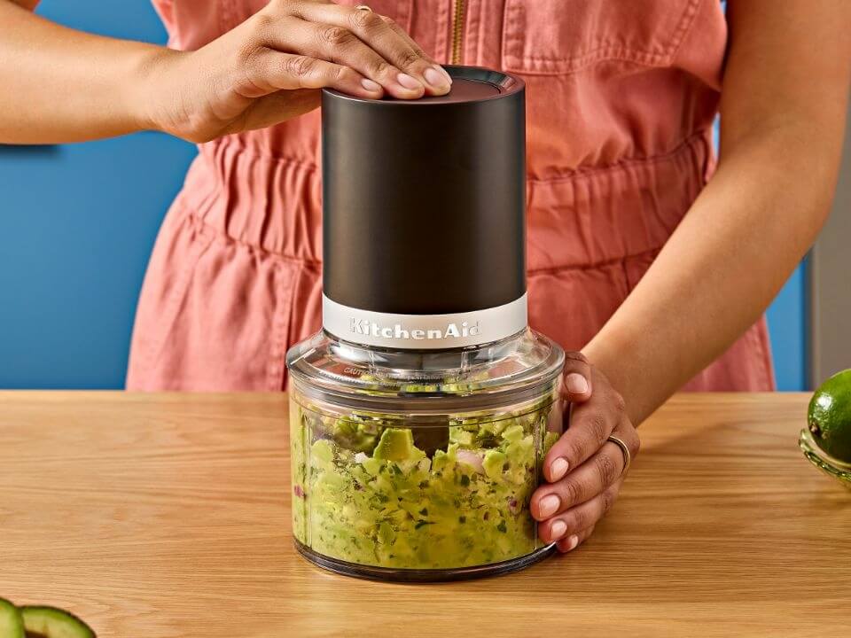 The KitchenAid Go family just got bigger with the recent addition of the top down chopper and citrus juicer. Launched to make your kitchen cupboard less cluttered, the collection features cordless appliances that run on a removable battery.