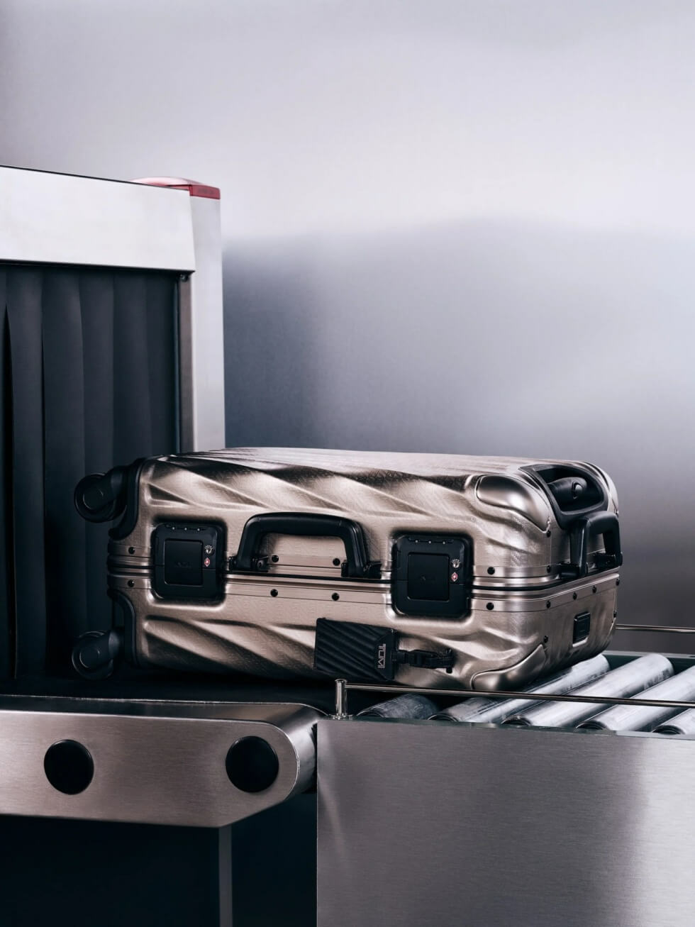 Checking in can be a hassle, which is why the Kith for TUMI 50th Anniversary series also has a couple of models that fit overhead compartments. We have the Short Trip Packing Case and International Carry On. For a distinct look, the entire lineup features aircraft-grade 19 degree aluminum exterior shell.