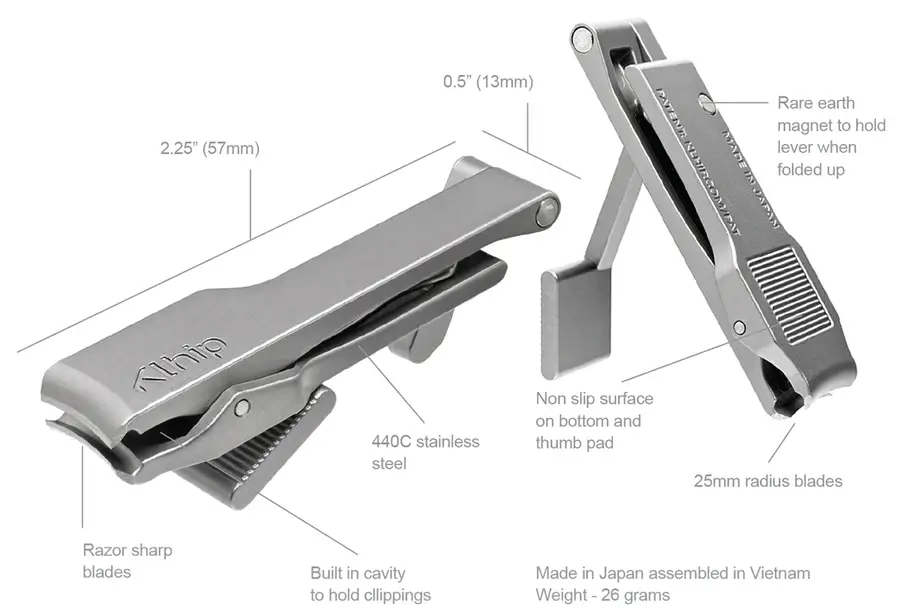 The Klhip Ultimate Clipper is built to last with its durable 440C stainless steel construction. As with other nail cutters, this one is also compact so you can put it in your bag or in your pocket. It measures 2.25″ long and 0.5″ wide. Made in Japan and assembled in Vietnam, this clipper is also lightweight at just 26 grams and comes with its own leather case for safe storage.