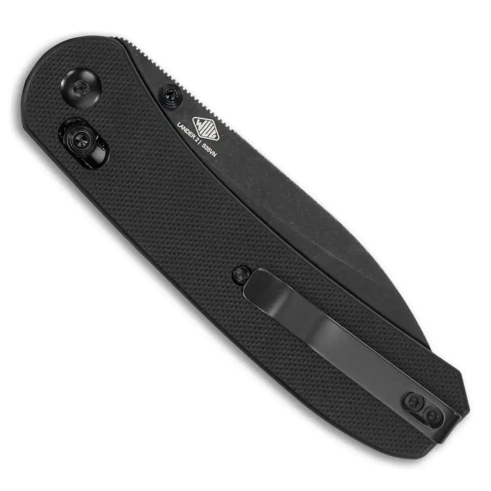 In the box, the knife packs 0.4″ thick G10 scales on a skeletonized steel handle equipped with steel liners. With the handle, the knife measures an overall 7.4″ long. The Knafs Lander 2 also features adjustable omega spring tension and a deep-carry pocket clip for added portability alongside a weight of just 2.9 oz (84.5 g).