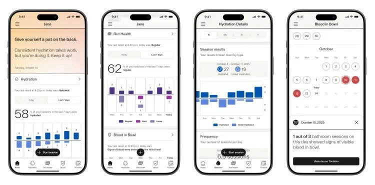 The device clamps to the rim of most toilet bowls and turns “the bathroom into a connected, data-informed health and wellness hub.” Using advanced sensors with spectroscopy and a validated algorithm, it goes to work analyzing waste to determine the presence of any internal health issue. The sensors are angled down for privacy so they only see what’s inside the bowl.