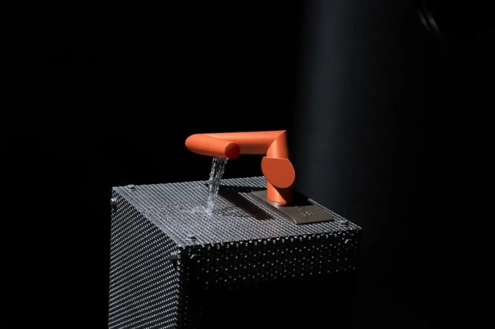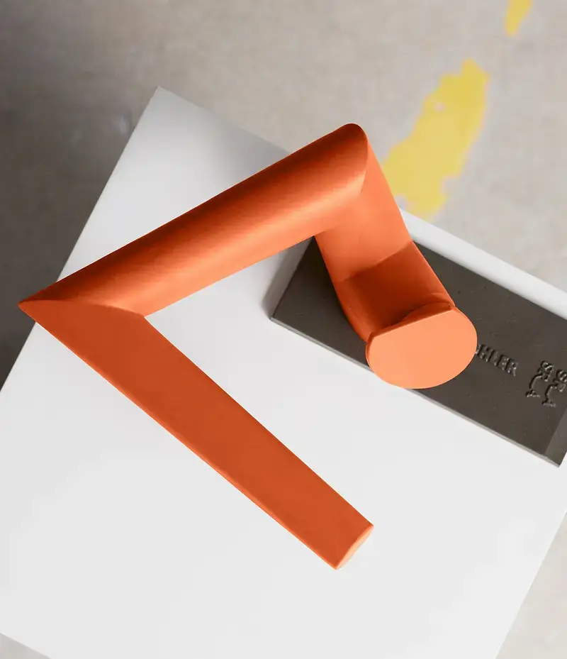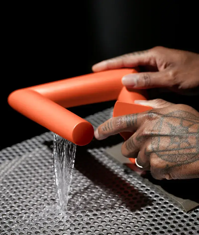A product collaboration with Dr. Samuel Ross and his industrial design studio SR_A, it debuted at the Design Miami in Kohler x SR_A’s architectural installation Terminal 01 exhibit. This faucet pushes the boundaries of colors, materials, and forms and defies the traditional design and performance of its kind with its striking angles and industrial bold Haptic Orange colorway. It challenges how we engage with the function and form of an everyday object such as a bathroom faucet.