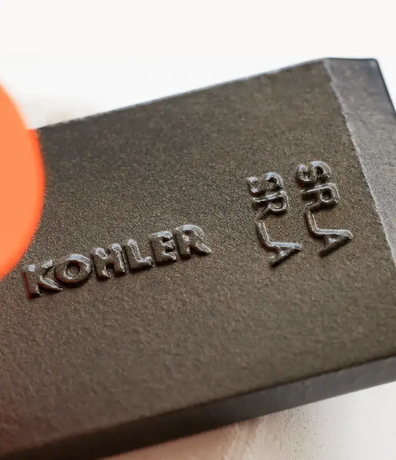 The Formation 01 is cast as a singular sculptural object using the Kohler-exclusive material Neolast, which gives it its dramatic form and color. Neolast offers boundless form, unexpected texture, and rich, saturated colors. Then it’s mounted on an embossed escutcheon plate crafted from Kohler’s iconic cast iron, for a perfect balance of future-forward design and the timeless industrial elegance of molten iron.