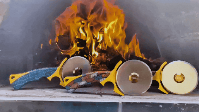 It also comes in unique colorways, as evident in Koi Knives’ Pizza Slicer, which is available in three colors: The Fire Bolt,  The Party Starter, and The Blue Bolt. The latter features a blue and black layered G10 handle inspired by the beaches of South Australia. Meanwhile, the deep orange in the Fire Bolt takes after the changed color of the sand, and the Party Starter is a fun mix of all the colors.
