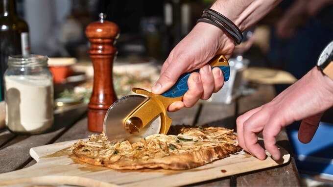 The humble pizza cutter is one of the most undervalued tools in the kitchen. It mostly comes in a generic steel or plastic frame, making it easily disposable and replaceable. Australian-based Koi Knives added a little pizzazz (pun intended) to its Pizza Slicer to give make it outdoor ready.