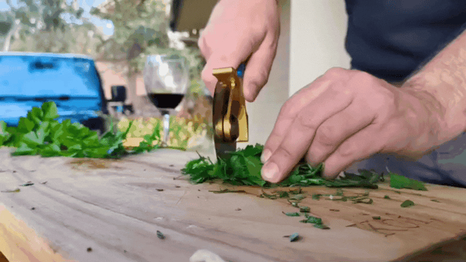 There’s nothing plain about this tool despite its simple name. It’s for heavy-duty use, featuring a strikingly attractive handle and a dangerously sharp blade protected by a blade guard. The wobble-free blade means business, wether it be rolling on pie, leafy greens, or other ingredients. It delivers precise or straight cuts and slices every time.