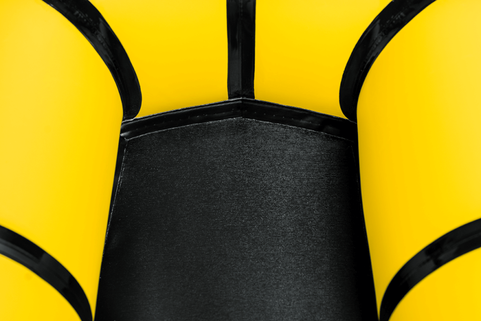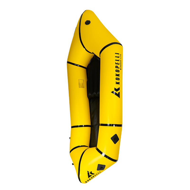 To make it robust and strong, the seams of the Kokopelli Rogue-Lite Packcraft are first stitched and then welded with double-reinforced 1-inch wide seam tape. The pontoon-to-floor attachment point is glued to the sidewall then reinforced with v-steam tape around the pack’s interior. Meanwhile, the main pontoon uses Leafield D7 valve.