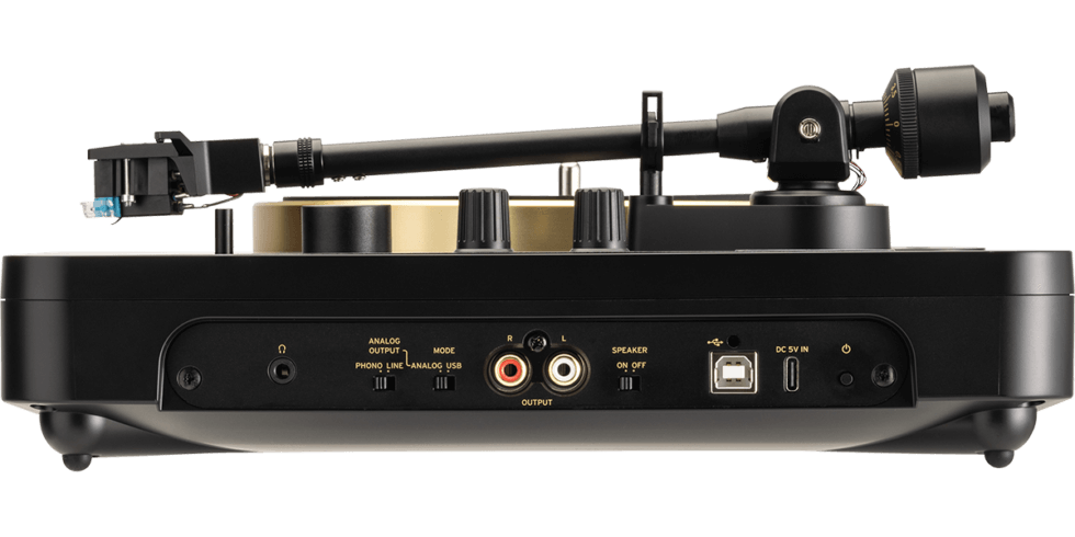 Contrasting the almost blackout colorway is a die-cast aluminum platter with a soft golden finish. Meanwhile, the tonearm comes with an adjustable counterweight to dial in the precise needle pressure based on the cartridge. KORG ships the turntable with an MM-style stereo (JICO J44 A7) cartridge. In addition to its AC adapter, the unit will run on six AA batteries
