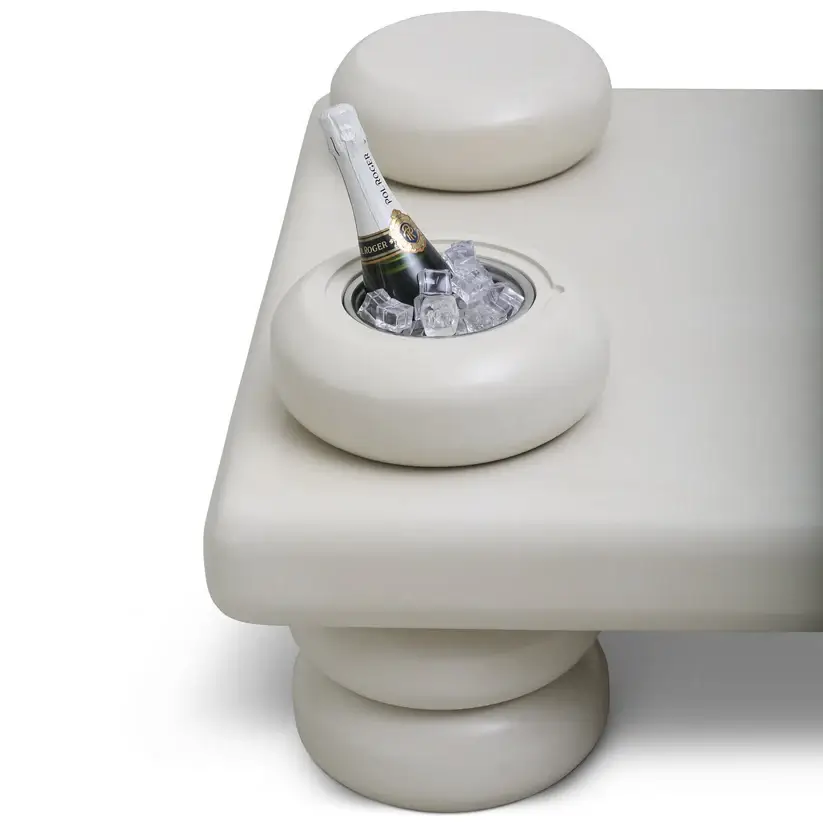 Meanwhile, the second holds fruits or snacks like peanuts and the third comes with a double-walled bucket for storing ice to keep drinks chilled. When not in use, simply put back their respective lids and these “bowls” seamlessly integrate into the table’s overall design.