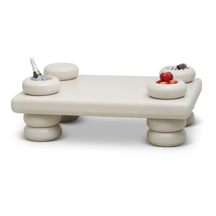 There are various designs on the market, some with built-in shelves for storage while others do not but boast elegant aesthetics. The Taarof Table, on the other hand, offers both: it looks uniquely appealing and is very functional. It especially stands out during social gatherings, when you need to serve guests food in bowls and cold drinks in a bucket of ice.