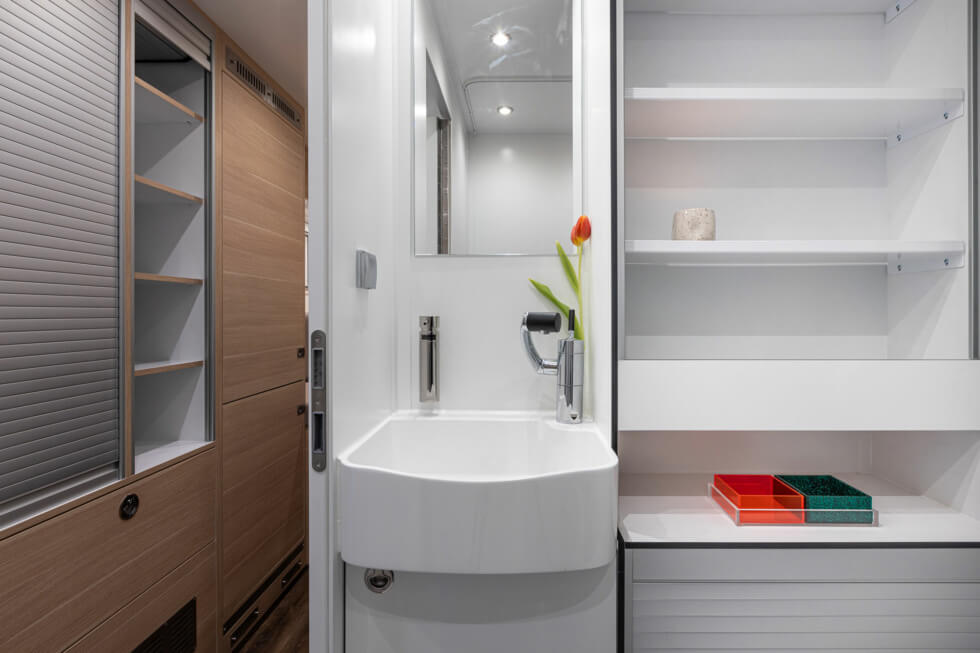 The king-sized main bed is assigned to the Bedrock XT2’s cabover and is a combination of a premium mattress with FROLI springs to enhance air circulation. A kitted-out kitchen is available for meal preparations, while a bathroom with a toilet and shower is included for when you need to answer the call of nature.