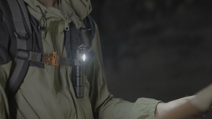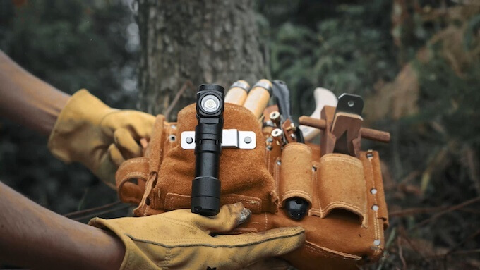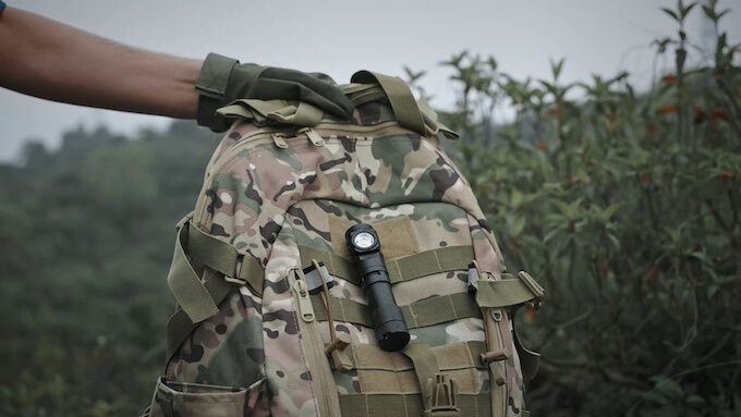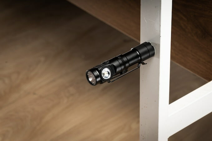 The L1 flashlight is even built for the outdoors with its aircraft-grade aluminum shell finished with Type III hardcoat anodizing. It is also IP68-rated waterproof and shock resistant. You can submerge it underwater for an hour. Moreover, this is an ergonomic, right-angled flashlight with a 180° rotating head and magnetic tailcap.