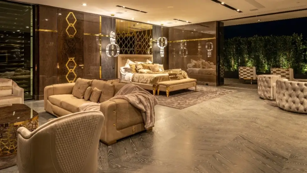 Even as is, the La Fin spans 40,000 square feet with 12 bedrooms and 18 bathrooms. Towering 23-foot ceilings, grand spiral staircases, bespoke crystal chandeliers, exotic marble, and so much more are sure to please anyone who craves the luxe lifestyle.