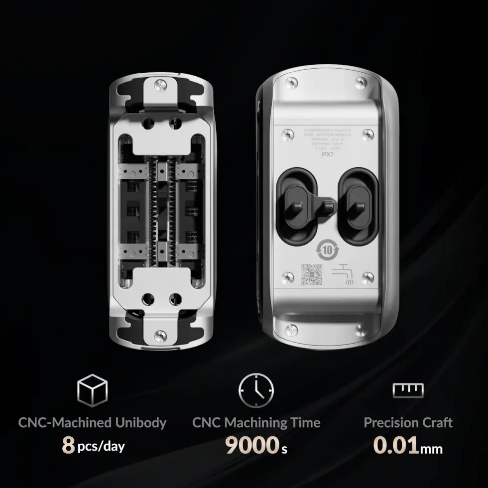 It is CNC-crafted from aerospace-grade aluminum, Apple-grade sandblasted for a durable, smooth matte finish. The construction has IPX7 waterproofing for wet and dry shaving and washing maintenance. It also has a transparent window that provides visuals on the motors at work.