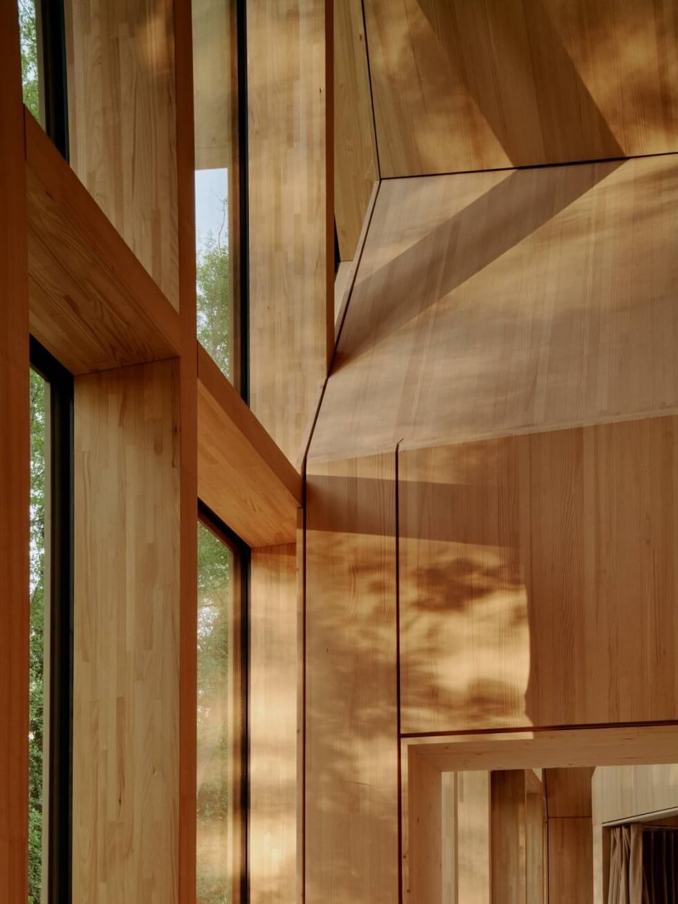 We laud Larsen’s practical use of glazing to endow the Lake House units with a transparent facade. In addition to the glass’ aesthetic application, it also allows natural light to illuminate the inside by day. The largest volume is designated as a great spot for groups to gather and have fun.