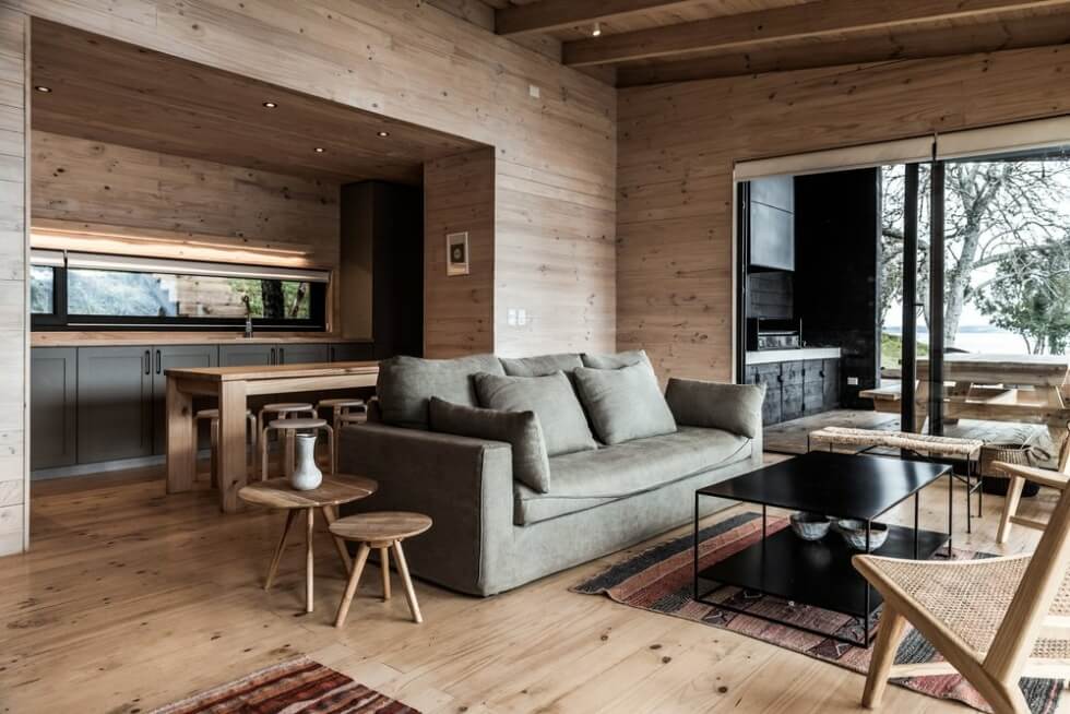 This is a modern contemporary home that entirely used local pine wood for the exterior and even for interior finishes including the floors, walls, and ceilings. A few pieces of furniture are also made of wood.