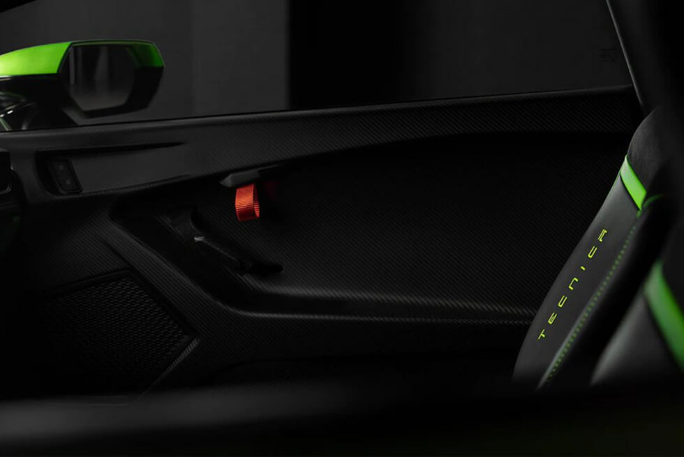 Adding to its agility when taking corners, the Huracán Tecnica is capable of rear-wheel-steering. Coupled with its magneto-rheological suspension, driving dynamics and handling are in the sweet spot. Moreover, the hybrid aluminum/carbon fiber chassis and aluminum/synthetic body keep its structure rigid yet lightweight.