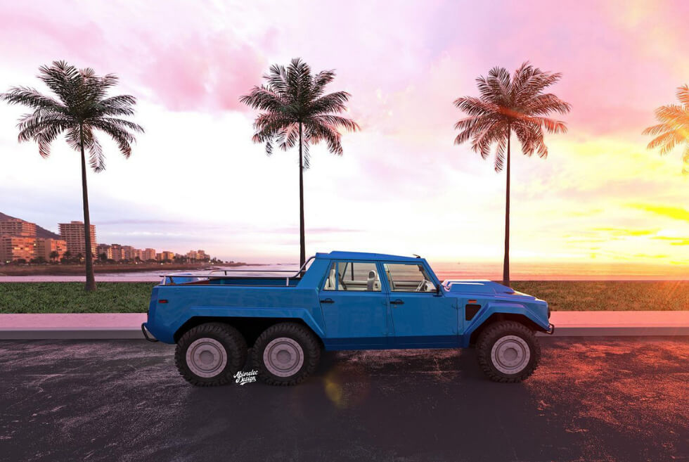 According to the artist, the inspiration for the colorway of his latest creation comes from the Lamborghini Countach. They’re calling it Blu Tahiti and it’s giving off a playful vibe, which is a good thing. The interior and the wheels are in white to contrast the exterior shade. Once more, we can only wish this Lamborghini LM002 6×6 becomes reality.