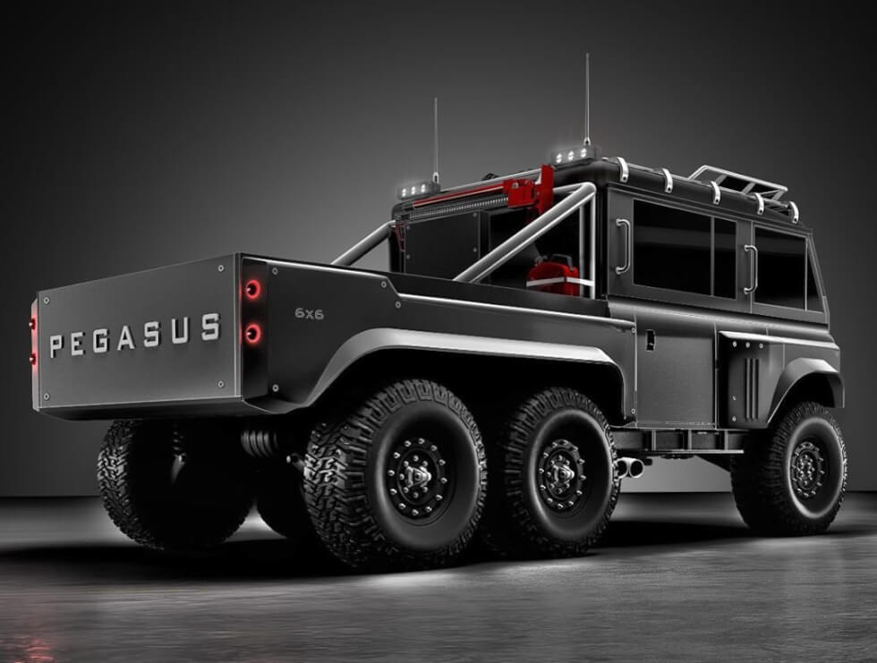 We’ve features conversions in the past that have turned regular four-wheeled rides into 6×6 all-terrain brawlers. The PEGASUS is one of those that originally starts off with a Land Rover Series III Defender. The vehicle and industrial designer might have gone slightly overboard with the aesthetics,