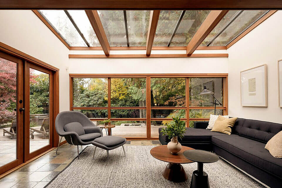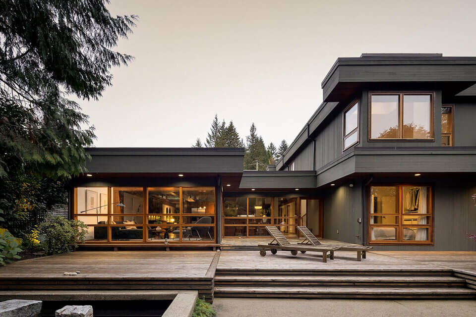 The Lantern House, for one, is a Neoteric House built on a simple post and beam construction that used fir beams and affordable cedar planking inside and out. It has exposed timber beams that delineate a flow through intimate and expansive open-plan interiors.