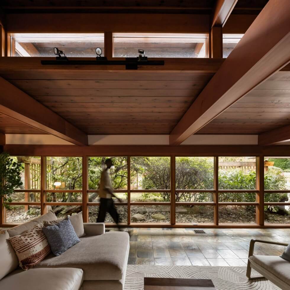 The Lantern House is a fusion of West Coast architecture and Japanese wabi-sabi principles, each space paying homage to Japanese simplicity which extends to the verdant outdoor sanctuary. The interiors feature rich wood beams and cedar planks, while clerestory and floor-to-ceiling windows bask the interiors with natural light. The living spaces offer a sense of calm and tranquility, something that His Holiness, the Dalai Lama himself, blessed.